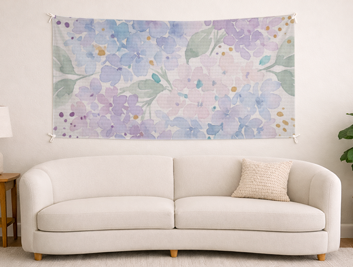 Our custom tapestries are made by printing your design onto the fabric using high-quality, fade-resistant inks. The fabric is then cut, hemmed for durability, and finished with sewn loops for easy hanging.